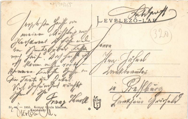 Leírás: Kecskemét, Cigányváros, cigányok és K.u.K. katonák. Komor Gyula kiadása (vágott / cut)
