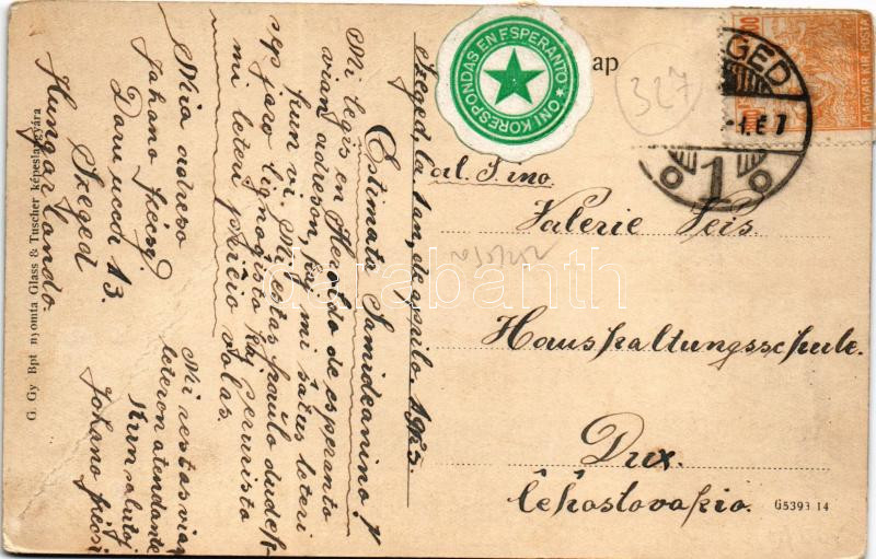 Leírás: Szeged, Kárász utca, Aigner József üzlete, Divatáruház a Kék Csillaghoz. Glass és Tuschner kiadása (fa)