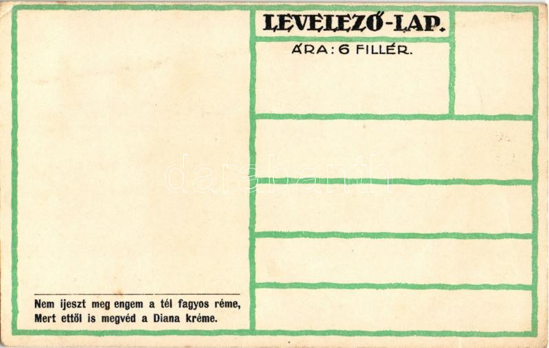 Síelő hölgy művészlap, téli sport, Diana krém reklám a hátoldalon / Sk... https://www.darabanth.com/hu/45-Nagyaukcio/45.1/Kepeslapok/Muveszlapok~18844/Sielo-holgy-muveszlap-teli-sport-Diana-krem-reklam-a-hatoldalon-Skiing-lady-Hungarian-~II3412951
