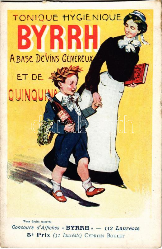 Tonique Hygienique Byrrh. A base de vins genereux et de quinquina. Concours d'Affiches "Byrrh" - 112 Lauréats 5e Prix (31 lauréats) / French apéritif advertisement art postcard. Art Nouveau s: Cyprien Boulet (vágott / cut)