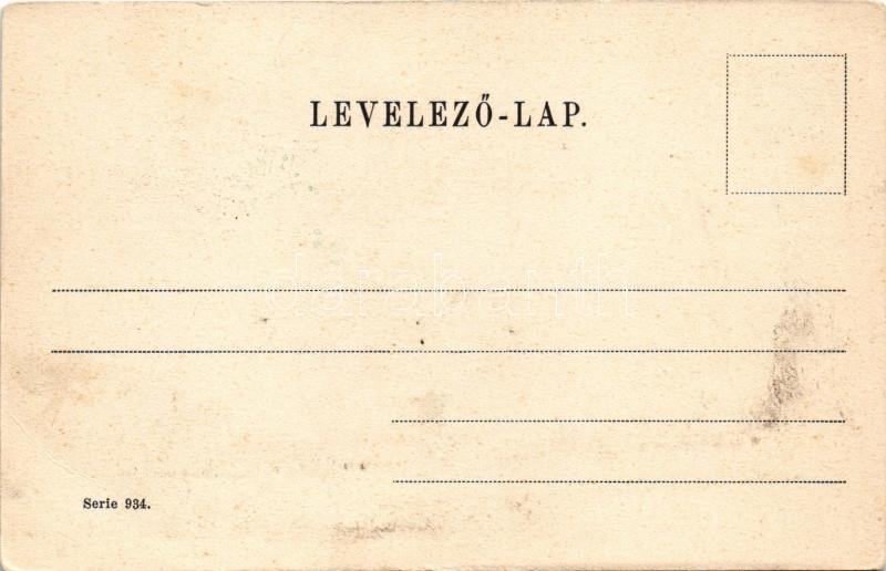 Talpra magyar, hí a haza! Petőfi Sándor a Nemzeti Múzeum lépcsőjén. Hazafias propaganda lap. Serie 934. / Memorial art postcard of the Hungarian Revolution of 1848, patriotic propaganda (felületi sérülés / surface damage)