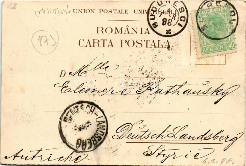 1898 Dambovicioara, Salutari din Romania. Defileul de la Dambovicioara (Cheile Dambovicioarei) / gorge, mountain pass. Editura Inst. de Arte Grafice Carol Göbl Art Nouveau, litho (EK)