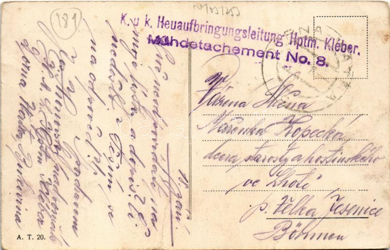 Leírás: 1918 Vatra Dornei, Dornavátra, Bad Dorna-Watra (Bukovina, Bucovina, Bukowina); Springbrunnen im Park / fountain + "K.u.K. Heuaufbringungsleitung Hptm. Kléber" (EK)