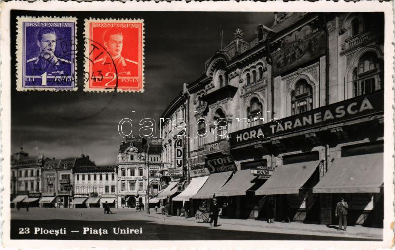 1943 Ploiesti, Ploesti, Ploesci; Piata Unirei / square, shops (EK) https://www.darabanth.com/hu/45-Nagyaukcio/45.1/Kepeslapok/Romania~18813/1943-Ploiesti-Ploesti-Ploesci-Piata-Unirei-square-shops-EK~II3452165