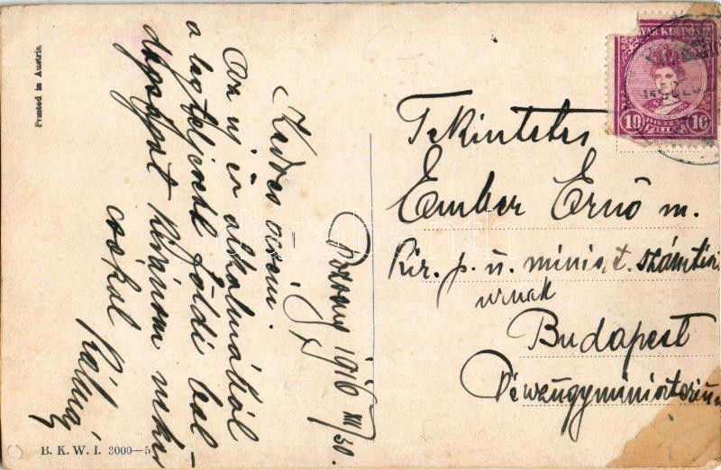 Leírás: 1916 Prosit Neujahr! B.K.W.I. 3000-5. / New Year greeting art postcard with pig and people in automobile (ragasztónyomok / glue marks)
