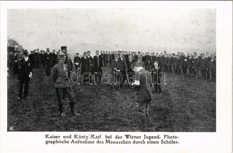 Kaiser und König Karl bei der Wiener Jugend. Photographische Aufnahme des Monarchen durch einen Schüler / Károly császár és király a bécsi ifjúság körében, egy diák lefényképezi az uralkodót / WWI Charles I of Austria among the young people of Vienna. Photograph of the monarch taken by a student