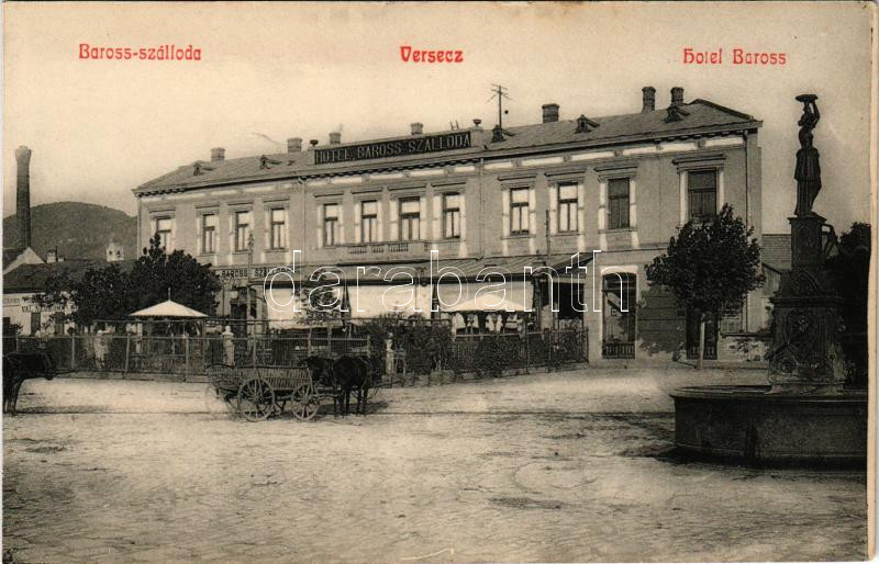 Leírás: Versec, Werschetz, Vrsac; Baross szálloda, kút / hotel and well