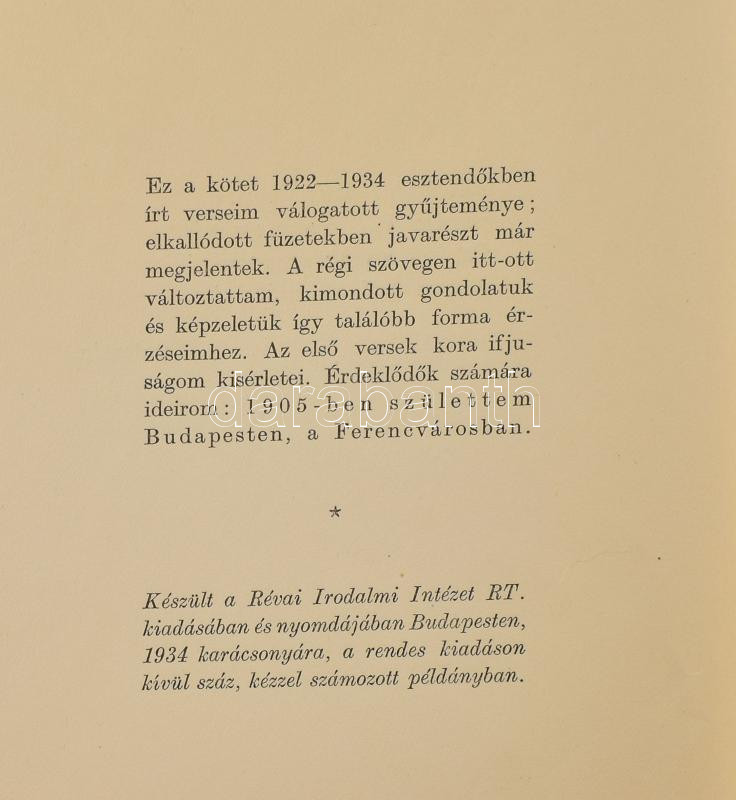 József Attila: Medvetánc. Válogatott költemények 1922-1934. Bp.,1934., Révai, 108+4 p. Első kiadás. Számozatlan példány! Felvágatlan példány!