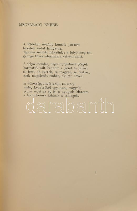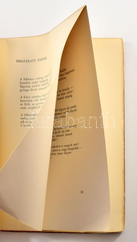 Kiadói papírkötés, foltos, kissé kopott borítóval, az elülső borítón apró szakadással, a hátsó borítón gyűrődéssel, foltos elülső szennylappal és kissé foltos címlappal.
