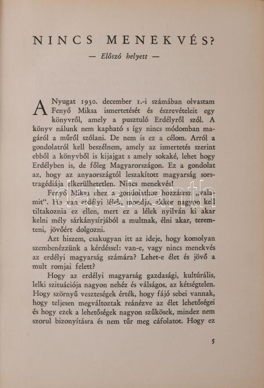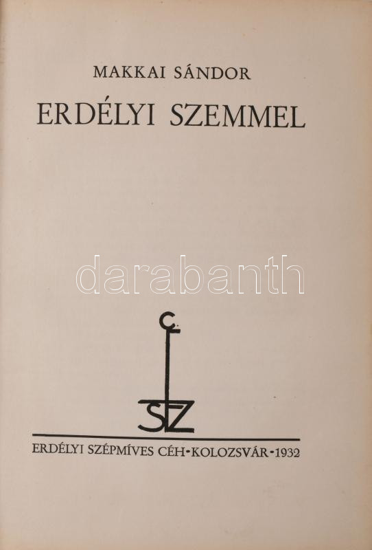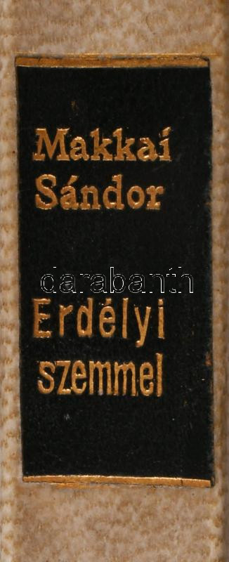 Makkai Sándor: Erdélyi szemmel. Erdélyi Szépmíves Céh 70. sz. kiadványa. Kolozsvár, 1932., Erdélyi Szépmíves Céh,(Minerva-ny.), 179+3+VI (Erdélyi Szépmíves Céh tagjainak névsora) p. 1. kiadás. Számozott, 207. számú, előfizetők részére készült példány. Kiadói félpergamen-kötés, Rohonyi Antal-kötés, kissé kopott borítóval, az ex libris-t kiszedték.