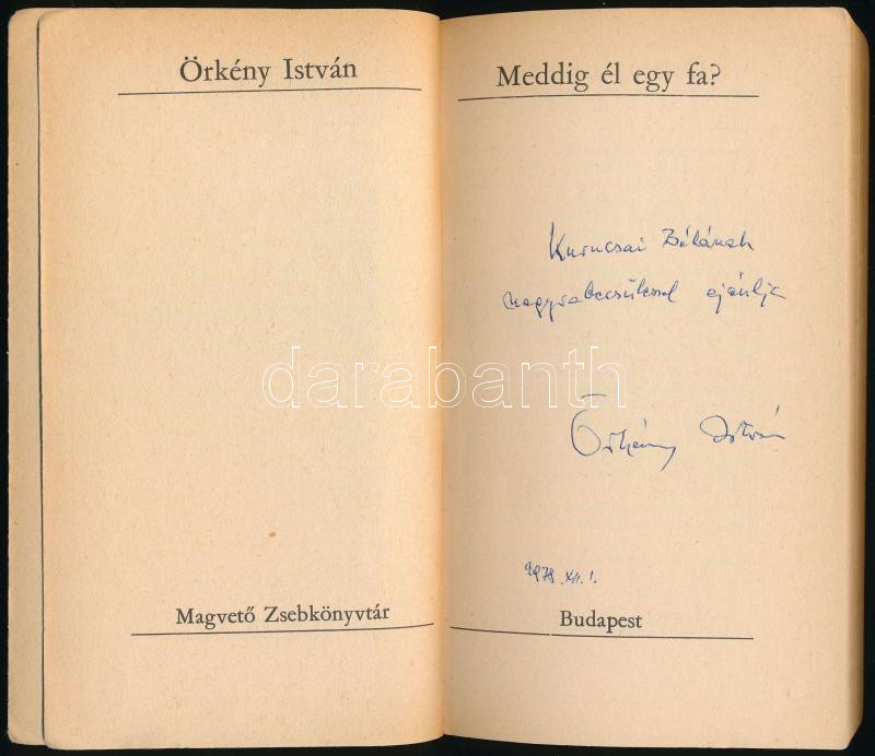 Örkény István: Meddig él egy fa? A szerző, Örkény István (1912-1979) által DEDIKÁLT példány. Magvető Zsebkönyvtár. Bp., 1976., Magvető. Első kiadás. Kiadói papírkötés,