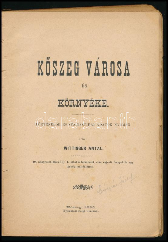 Wittinger Antal: Kőszeg városa és környéke. Kőszeg, 1890, Feigl Gyula.... https://www.darabanth.com/hu/45-Nagyaukcio/45.1/Konyvek/Konyvek-Utazas-helytortenet~18979/Wittinger-Antal-Koszeg-varosa-es-kornyeke-Koszeg-1890-Feigl-Gyula-Kiadoi-papirkotes-~II3432874