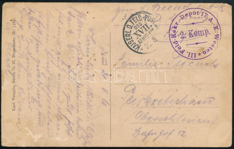 Leírás: ~1917 Tábori posta képeslap / Field postcard "III. Feld-Rekr.-Depot 17.A.-K. Westen" + "KAISER LD. FELD-POSTAMT DES XVII. ARMEE"