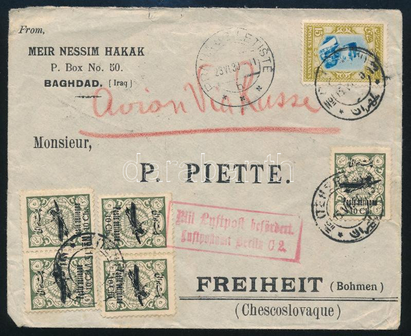 1930 Légi levél 6 bélyeggel Németországba / Airmail cover with 6 stamp... https://www.darabanth.com/hu/45-Nagyaukcio/45.1/Kulfoldi-filatelia-es-postatortenet/Iran~18920/1930-Legi-level-6-belyeggel-Nemetorszagba-Airmail-cover-with-6-stamps-to-Germany~II2858279