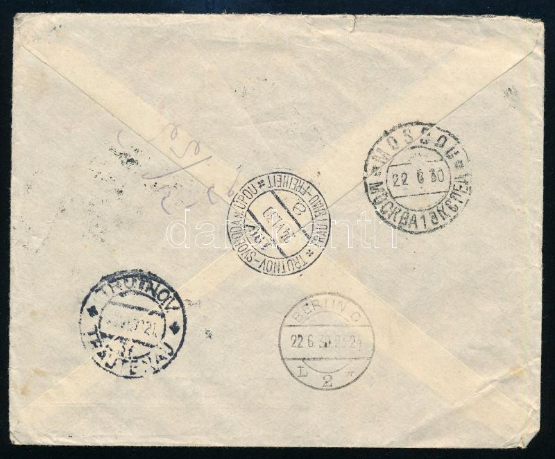 Leírás: 1930 Légi levél 6 bélyeggel Németországba / Airmail cover with 6 stamps to Germany