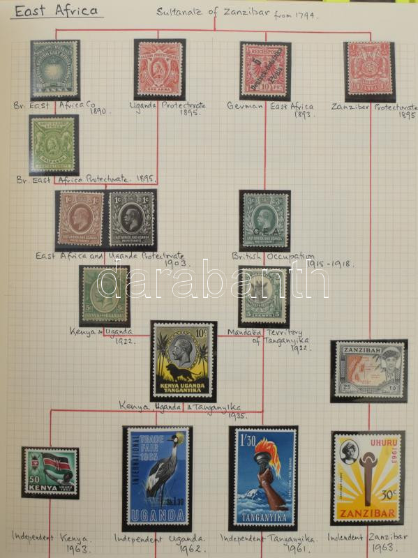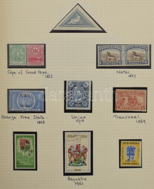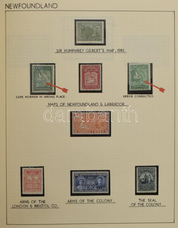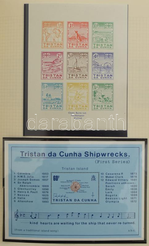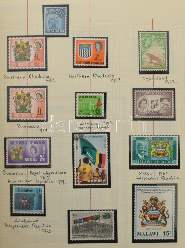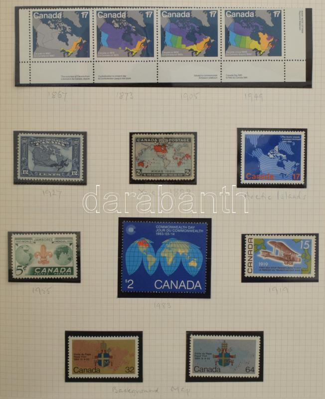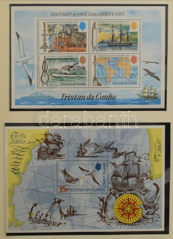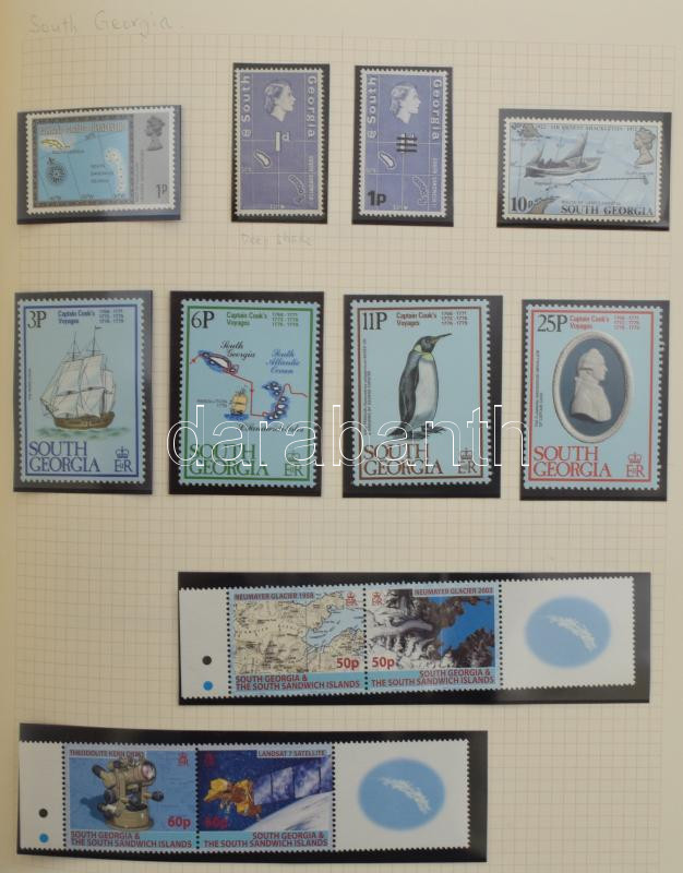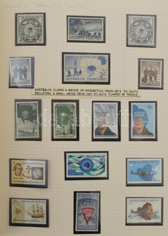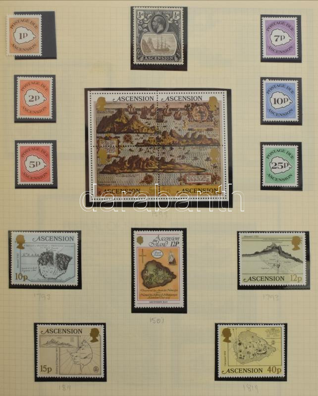 Térkép motívum gyűjtemény albumban, benne sorok és blokkok az egész világból. Főleg postatiszta anyag nagyon sok angol gyarmattal. / Maps tematic collection, mostly MNH material with British colonies and territories.