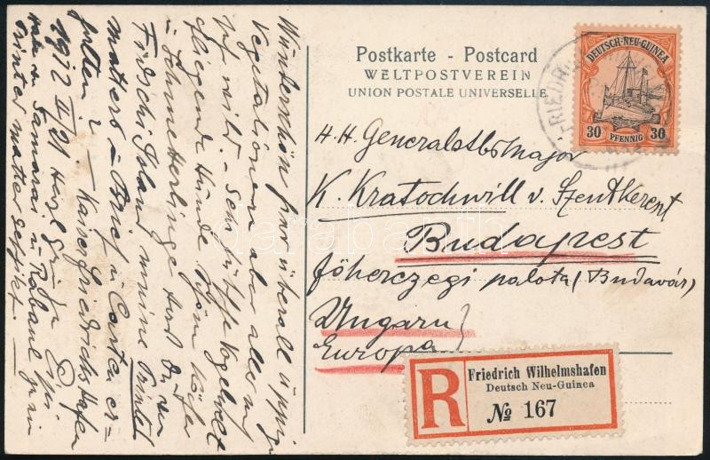 Leírás: Deutsch Neuguinea 1912 Képeslap Kratochwill Károlynak, József főherceg fiainak a nevelőjének címezve Budapestre / Postcard to Budapest