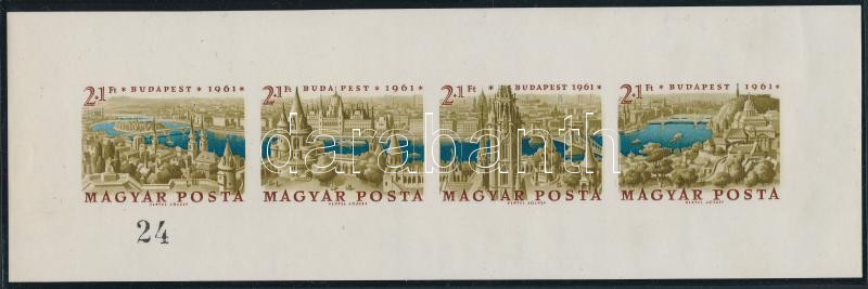 1961 Bélyegnap vágott ajándék Panoráma blokk luxus minőségben, nagyon alacsony 24-es sorszámmal!!! / Mi 1789-1792 imperforate block in luxury condition, with low number. RRR!