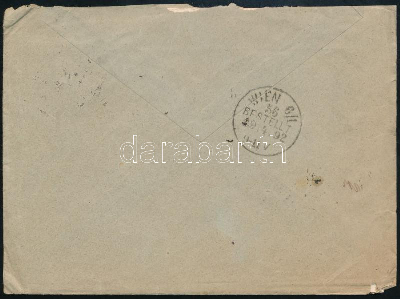 1892 5kr levélen Pozsonyból Bécsbe, majd továbbküldve Olaszországba, olasz portó bélyegekkel / 5kr on cover from "POZSONY / ESTE" to Vienna, redirected to Italy with Italian postage due stamps