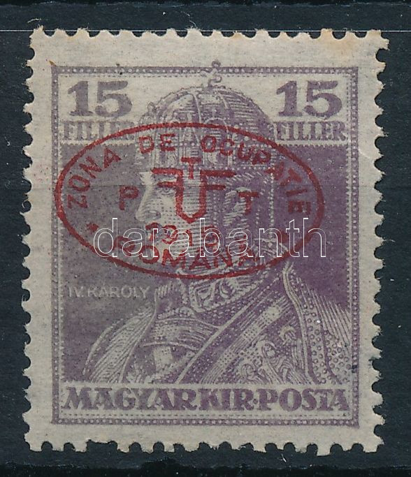 Leírás: Debrecen I. 1919 Károly 15f piros felülnyomással / Mi 38a