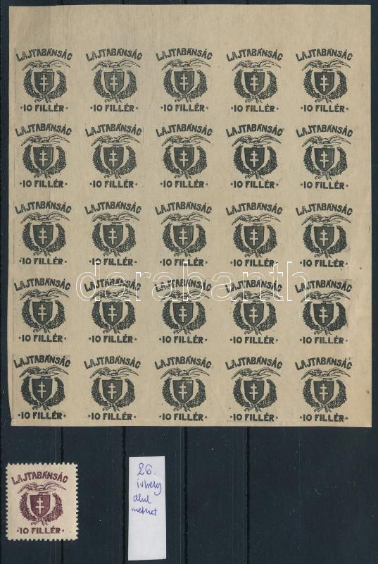 Leírás: Nyugat-Magyarország VII. 1921 10f próbanyomat ívszéli vágott 25-ös tömbben / proof in block of 25