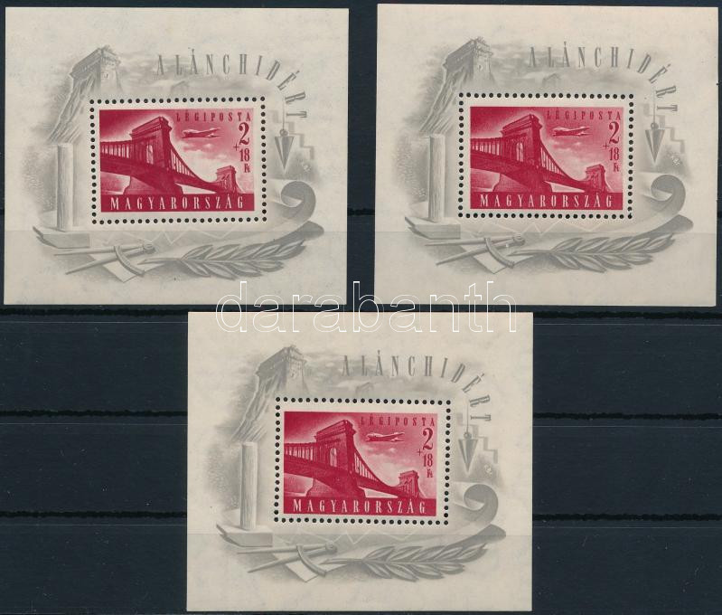Leírás: 1948 3 db Lánchíd I. blokk (105.000) / 3 x Mi 12 block