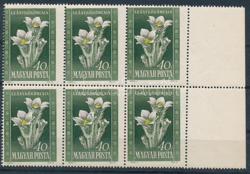 Leírás: 1950 Virág I. 40f ívszéli hatostömb elfogazva / with shifted perforation