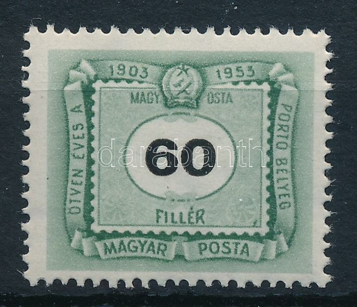 1953 50 éves a magyar portóbélyeg 60f számvízjellel / Mi P 216 number ... https://www.darabanth.com/hu/45-Nagyaukcio/45.1/Magyar-filatelia-es-postatortenet-Online/1946-1956-kozotti-kiadasok~18884/1953-50-eves-a-magyar-portobelyeg-60f-szamvizjellel-Mi-P-216-number-in-the-watermark~II3448666