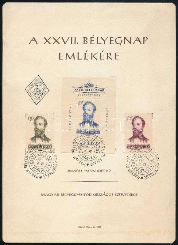 Leírás: 1954 Bélyegnap emléklap / souvenir card