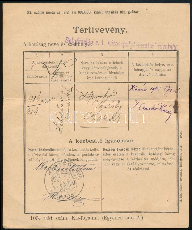 1925 Tértivevény 2.500K bérmentesítéssel / Retour recepisse https://www.darabanth.com/hu/45-Nagyaukcio/45.1/Magyar-filatelia-es-postatortenet-Online/A-Korona-inflacio-idoszaka~18879/1925-Tertiveveny-2500K-bermentesitessel-Retour-recepisse~II3437852
