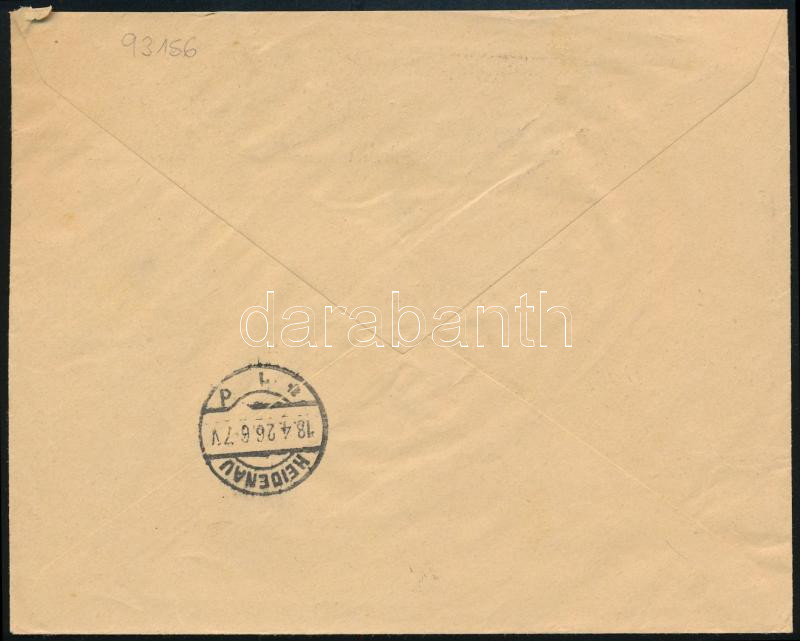 Leírás: 1926 Ajánlott levél Németországba 10.000K bérmentesítéssel / Registered cover with 10.000K to Germany