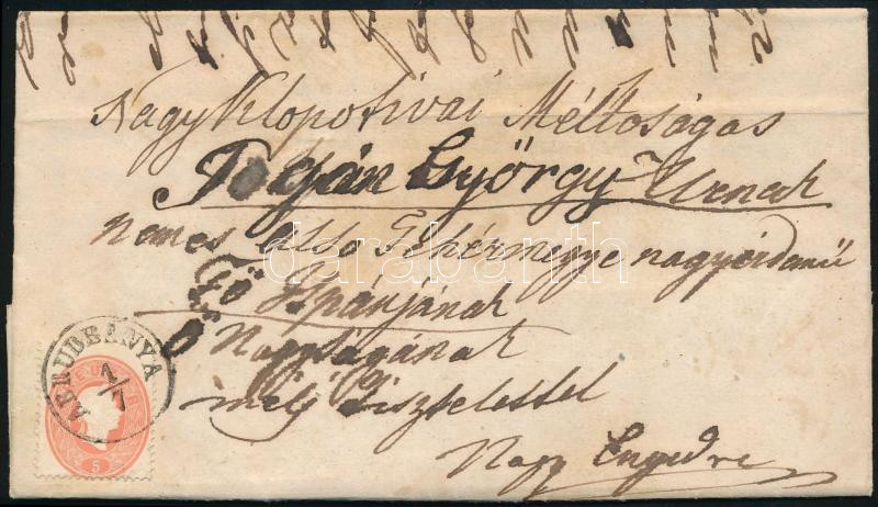 Leírás: 1863 5kr képbe fogazva levélen / 5kr with shifted perforation, on cover "ABRUDBÁNYA" - Nagy Enyed