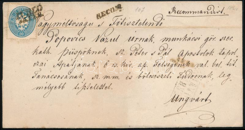 Leírás: 1864 2 x 10kr ajánlott levélen (sérültek a bélyegek) / 2 x 10kr on registered cover (damaged stamps) "LUBLÓ" - Ungvár