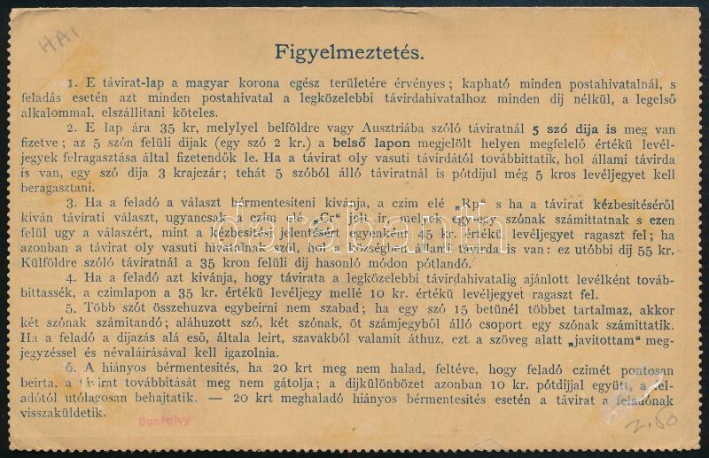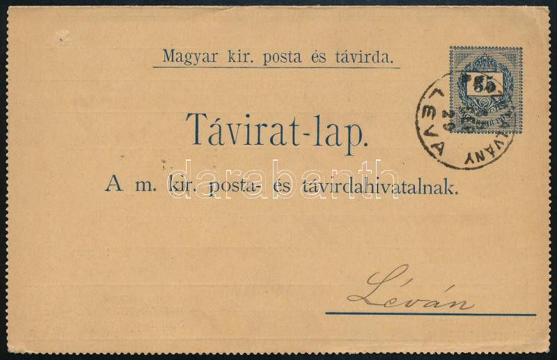 Leírás: 1888 35kr díjjegyes zárt táviratlap / PS-telegram "PÉNZUTALVÁNY / LÉVA"