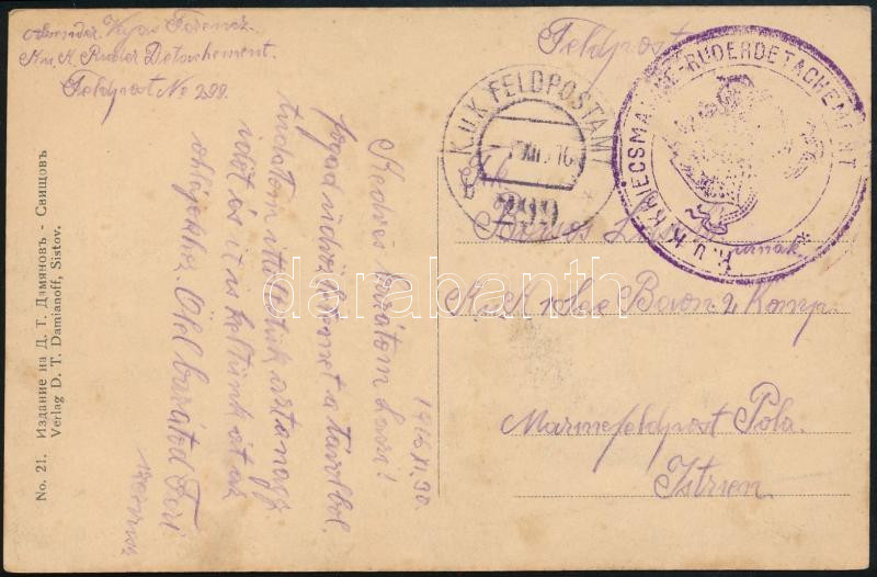 Leírás: 1916 Tábori posta képeslap / Field postcard "K.u.K. FELDPOSTAMT / 299" , "K.u.K. KRIEGSMARINE-RUDERDETACHEMENT"