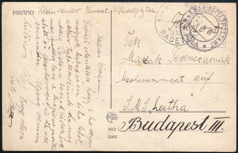 1917 Tábori posta képeslap / Field postcard "S.M.S. RADETZKY"... https://www.darabanth.com/hu/45-Nagyaukcio/45.1/Magyar-filatelia-es-postatortenet-Online/I-Vilaghaborus-osztrak-magyar-tabori-posta-Haditengereszet~18750/1917-Tabori-posta-kepeslap-Field-postcard-SMS-RADETZKY~II3442145