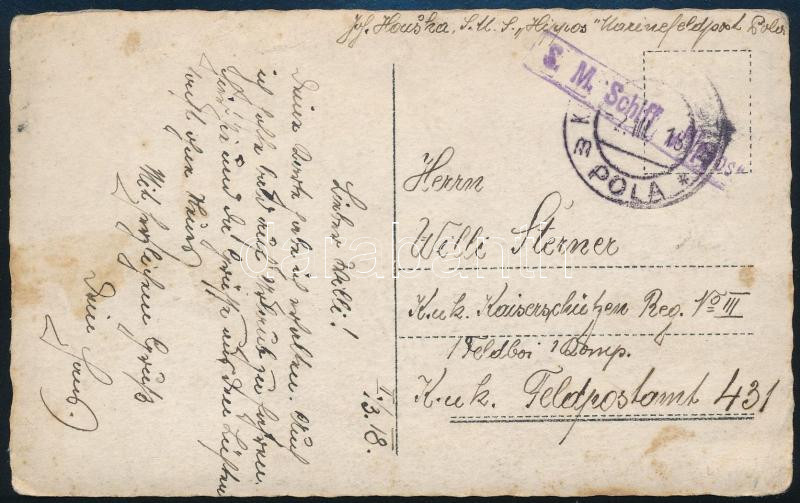1918 Tábori posta képeslap / Field postcard "S.M. Schiff Hippos&q... https://www.darabanth.com/hu/45-Nagyaukcio/45.1/Magyar-filatelia-es-postatortenet-Online/I-Vilaghaborus-osztrak-magyar-tabori-posta-Haditengereszet~18750/1918-Tabori-posta-kepeslap-Field-postcard-SM-Schiff-Hippos~II3023412