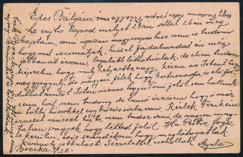 Leírás: 1915 Tábori posta levelezőlap Sziléziai tartalékkórháznak címezve / Field postcard addressed to a reserve hospital in Bielitz, Silesia "K.u.K. MILITARPOST / BRč