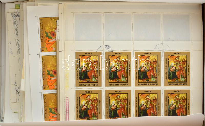 Leírás: 283 db magyar teljes ív az 1970-1980-as évekből, vízjelre átnézetlen anyag, dobozban / 283 Hungarian complete sheets from the 1970s-1980s