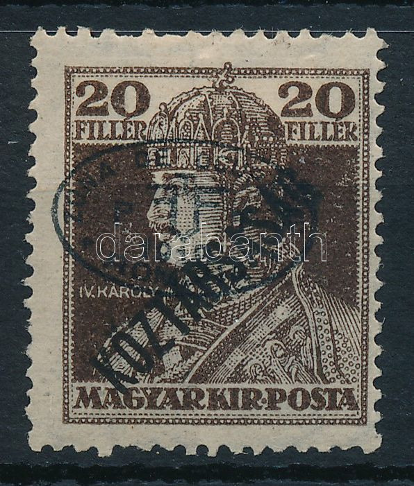 Leírás: Debrecen I. 1919 Károly/Köztársaság 20f fekete felülnyomással / Mi 58c