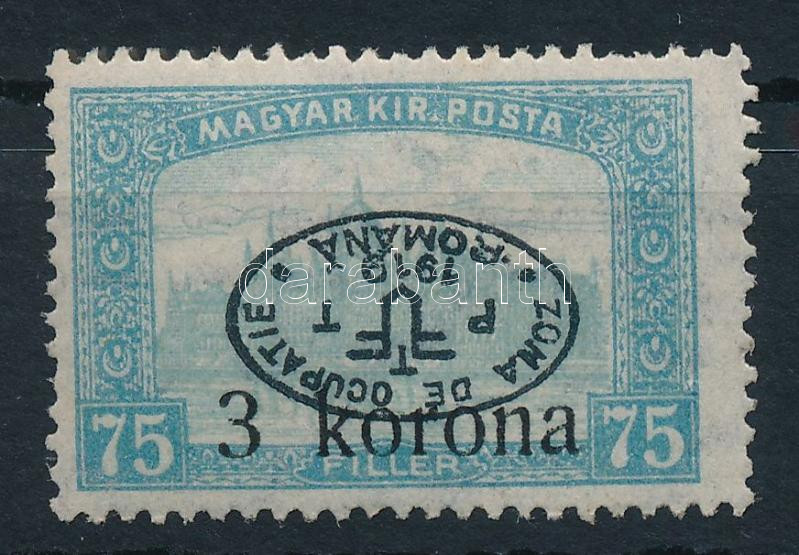 Leírás: Debrecen I. 1919 Parlament 3K/75f fordított felülnyomással / Mi 34 with inverted overprint