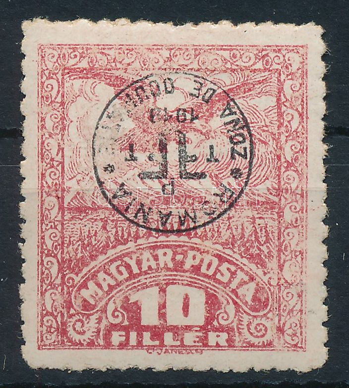 Leírás: Debrecen II 1919 10f fényes papíron fordított felülnyomással / Mi 81 with inverted overprint, Sign: Bodor