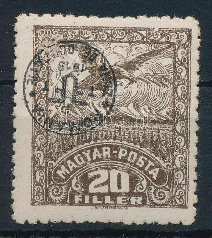 Leírás: Debrecen II 1919 20f fényes papíron fordított felülnyomással / Mi 83 with inverted overprint, Sign: Bodor