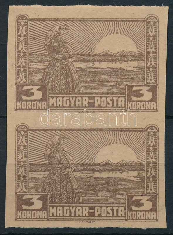 Signed: B... https://www.darabanth.com/hu/45-Nagyaukcio/45.1/Magyar-filatelia-es-postatortenet-Online/Megszallasi-es-helyi-kiadasok-1919-1921-Debrecen-I-II~18757/Debrecen-II-1920-3K-vagott-probanyomat-par-proof-in-pair3Cbr-3E-Signed-Bodor~II3447622
