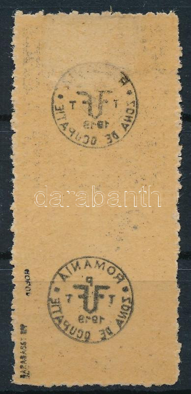 Debrecen II. 1920 4f középen fogazatlan pár, gépszínátnyomattal (alsó bélyeg postatiszta) / Mi 78y pair, imperforate in the middle, with machine offset