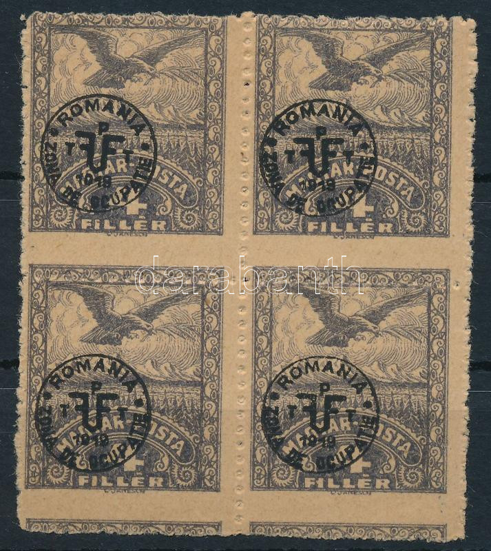 Signed: Bodor https://www.darabanth.com/hu/45-Nagyaukcio/45.1/Magyar-filatelia-es-postatortenet-Online/Megszallasi-es-helyi-kiadasok-1919-1921-Debrecen-I-II~18757/Debrecen-II-1920-4f-negyestomb-Mi-78x-block-of-4-3Cbr-3E-Signed-Bodor~II3447614