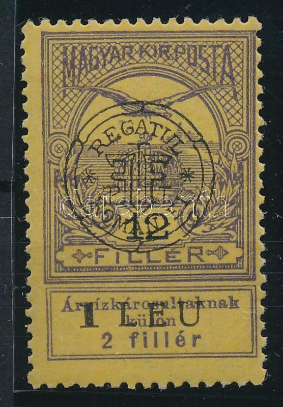 Leírás: Kolozsvár 1919 Árvíz 12f a felülnyomatban lemezhibával (rozsdapöttyök) / with plate variety (stain dots)