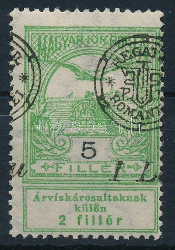 Leírás: Nagyvárad 1919 Árvíz 5f látványosan elcsúszott felülnyomással / Mi 4 II. with shifted overprint