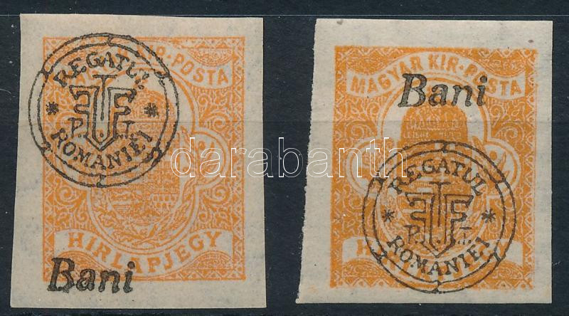 Leírás: Nagyvárad 1919 Hírlapbélyeg Bani lent + támpéldány / Mi 19xII. shifted overprint