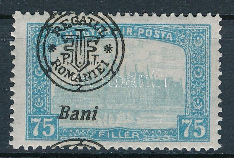 Leírás: Nagyvárad 1919 Parlament 75f látványosan elcsúszott felülnyomással / Mi 38 II. with shifted overprint